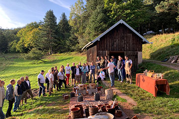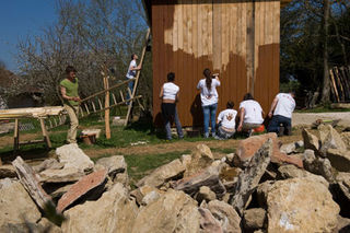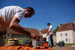 Les chantiers réalisés par notre équipe de bénévoles s'inscrivent dans cette démarche. Elles sont l'occasion de promouvoir le matériau "ocre" pour son intérêt technique et esthétique, et de renouer avec les savoir-faire.
