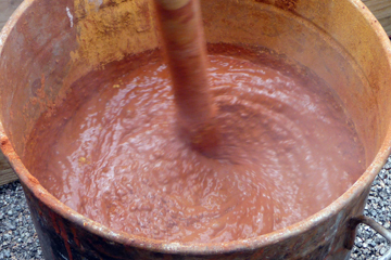 L'association Terres et Couleurs s'est donnée comme mission de retrouver les couleurs du terroir, en utilisant des recettes de peintures traditionnelles comportant des pigments naturels minéraux tels que l'ocre.